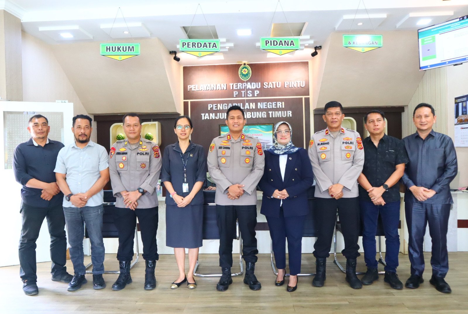 Kunjungan tersebut disambut langsung oleh Ketua Pengadilan Negeri Kabupaten Tanjung Jabung Timur, Anisa Primadona Duswara, S.H., M.H. Silaturahmi ini bertujuan untuk mempererat komunikasi, koordinasi, serta sinergi antar aparat penegak hukum dalam rangka mewujudkan sistem peradilan yang profesional, transparan, dan berkeadilan.